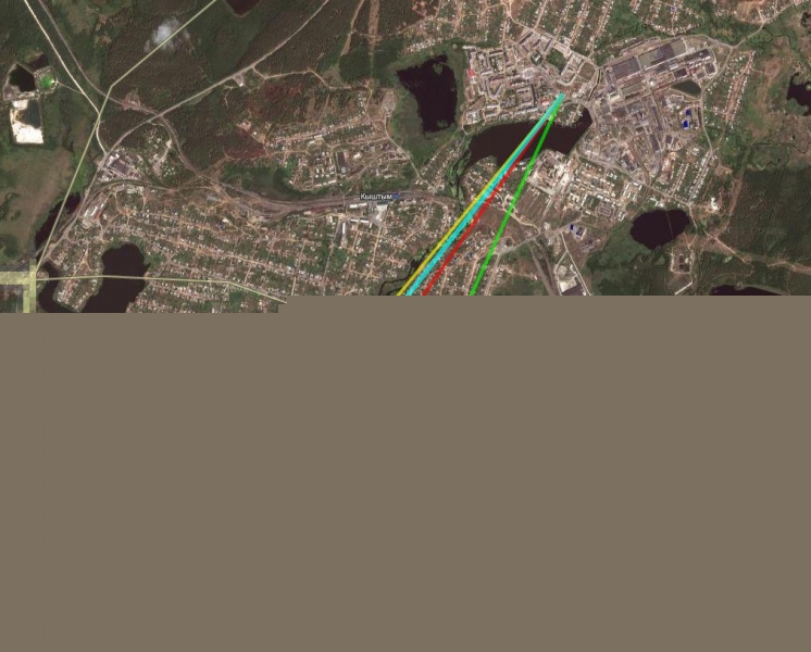 Зеленая линия направление на Мекку, желтая линия направление на египетские пирамиды (Сфинкса) и голубая - Назарет. Решайте сами.