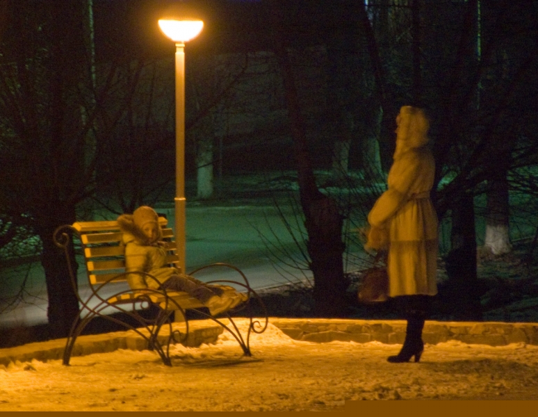 Фонари - скамейки - люди